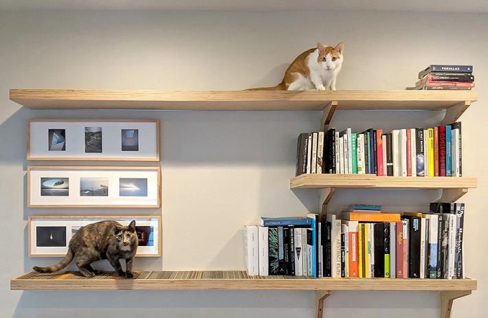 Questo è un elemento fondamentale da sfruttare nella riorganizzazione degli spazi domestici quando ci sono cani e gatti conviventi. Predisporre in ogni stanza spazi in altezza dedicati al gatto, comodi e raggiungibili dai balzi della nostra pantera, è importantissimo per garantire punti di osservazione e rifugi sicuri non raggiungibili dal rumoroso quadrupede puzzolente dei piani bassi - gatto pensiero. Questo darà a Sissy la possibilità di studiare dall’alto lo strano comportamento del nuovo arrivato e di scendere a sua discrezione per tentare le prime interazioni gestendone i tempi ed avendo sempre una via di fuga in caso di necessità. L’amore del gatto per le altezze è un fattore da sfruttare anche nella disposizione delle ciotole di Sissy, sistemandole su un ripiano in alto facilmente raggiungibile con un paio di salti. Ciò le darà la possibilità di poter gustare il suo cibo con pasti piccoli e frequenti, mantenendo altresì la sua ciotola al sicuro dalle mire della piccola aspirapolvere a quattro zampe.