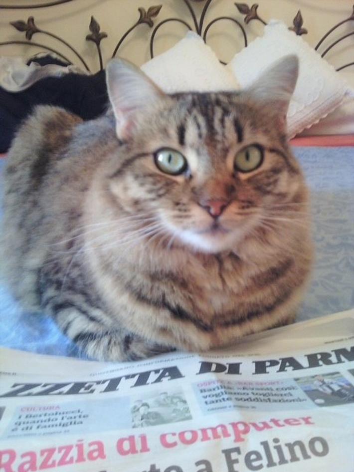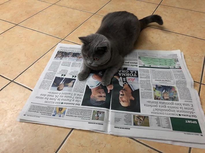 Matteo Gastaldi, il fortunato umano di Meggy, ci fa sapere che a questa meravigliosa baffuta piace molto quando nella Gazzetta si parla di Ronaldo, perché in questo modo combaciano due delle sue cose preferite!