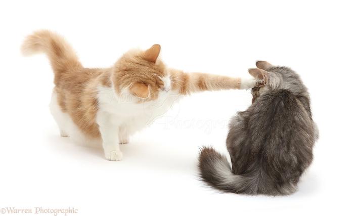 Teniamo presente che per il gatto già la semplice vicinanza nel condividere lo spazio in un momento di relax o di riposo è già un segnale di grandissima intimità, prima ancora di arrivare al contatto vero e proprio che alcuni soggetti poco avvezzi alle smancerie è l'equivalente umano di un bacio alla francese. Il corrispettivo di un abbraccio di saluto in gattese sono invece le strofinate e le musate reciproche dopo un po che non ci si vede. Mentre le carezze, le coccole e i baci si trasformano in uno scambio di leccate (grooming) e fusa di gruppo fino ad addormentarsi vicini vicini. Ma il contatto non comunica solo amicizia, abbiamo anche la sua espressione opposta: zampate, unghiate, assalti e morsi che rappresentano l’escalation delle manifestazioni di aggressività. In questo caso, prima di arrivare al conflitto fisico aperto, i gatti in questione esprimeranno una serie articolata e fantasiosa di comportamenti di mobbing che spesso risultano difficilmente visibili anche ai proprietari più attenti ma che provocano grande stress nei soggetti che li subiscono.