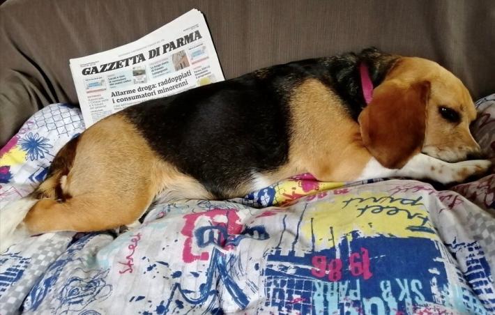 Anche se dalla foto non si direbbe, la sua umana Franca Zanetti ci informa che la sinuosa Olivia è tanto simpatica quanto monella. Noi sappiamo solo che ci fa molto piacere che sia una lettrice assidua della nostra rubrica.  Volete che la foto del vostro beniamino venga pubblicata nel prossimo appuntamento della nostra rubrica?  Niente di più semplice: immortalate i vostri amici mentre leggono la Gazzetta e inviate la foto a compagnedibranco@gmail.com  aggiungendo tre aggittivi che li descrivano - tutti gli animali sono i benvenuti!