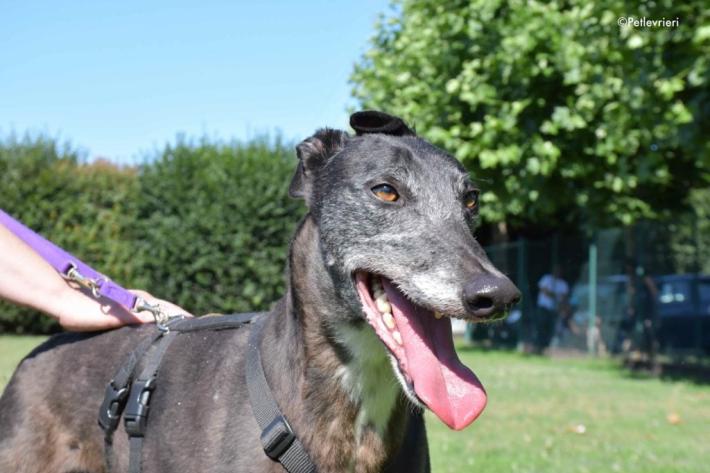 Stupendo Greyhound di 5 anni. Molto educato, una volta acquisita confidenza è affettuoso senza essere “sdolcinato” ed ama ricevere carezze ed attenzioni. Non va però d’accordo con i gatti.