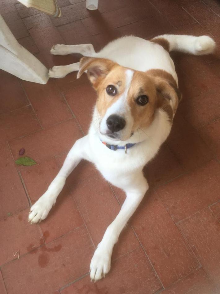Vivace e giocherellone Bellissimo cucciolone meticcio di un anno, del peso di circa 15 kg. Ha un carattere vivace e giocherellone, adatto a vivere in una famiglia con bambini. Non va d’accordo con cani maschi.