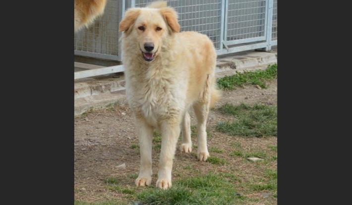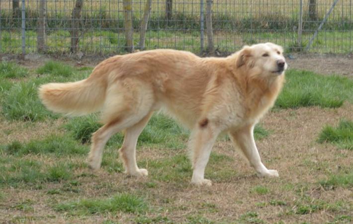 Bell'incrocio di Maremmamo, 4 anni, taglia grande. Riservato, ha timore delle persone e necessita di un giardino. Fratello di Nala, cerca un’adozione di coppia.