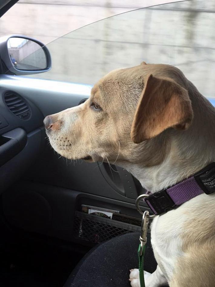 Splendido cucciolone di 8 mesi, incrocio tra Labrador ed Amstaff. Educato, equilibrato ed obbediente, va d’accordo con i suoi simili.