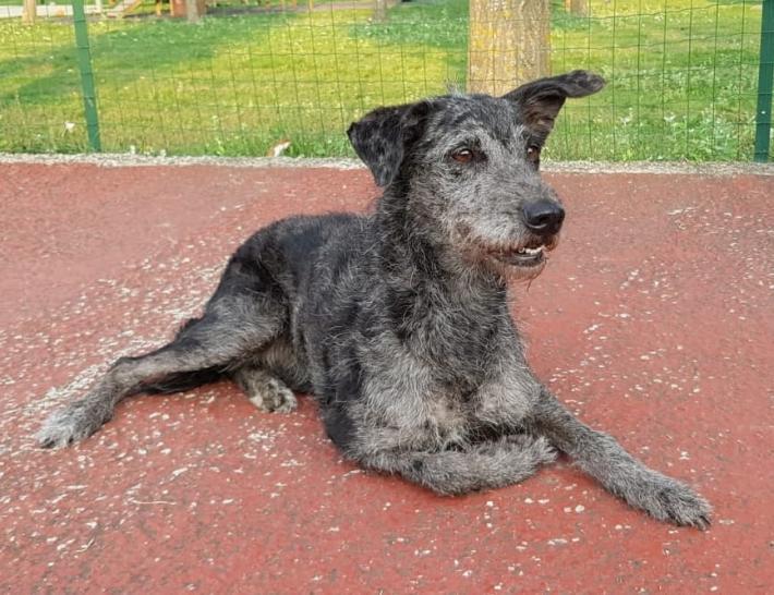 Bella meticcia di 8 anni. Dolce e gioiosa con chi conosce, è un po’ diffidente con gli estranei. Dominante con gli altri cani, è esuberante e ha bisogno di un giardino in cui correre.