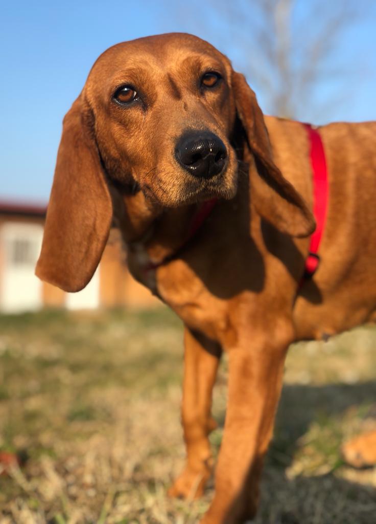 Segugio di 7 anni. Timoroso con le persone, basta un po’ di pazienza per fargli ritrovare fiducia. Socievole con le cagnoline femmine, ama esplorare e fare lunghe passeggiate.