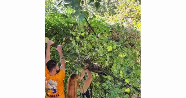 Un gatto è salito su un albero del Parco Ducale e non riusciva più a scendere. Salvato da un volontario. La segnalazione con la foto arriva da Massimo Mari.