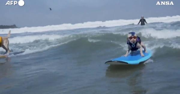 Cani surfisti sulle onde della California settentrionale in occasione del Campionato mondiale di surf per cani. Esibizioni di decine di animali provenienti da Europa e Asia. I premi finali sono stati assegnati in diverse categorie a seconda della taglia del cane. I giudici hanno tenuto conto della distanza del percorso e hanno assegnato punti bonus per lo stile. Il ricavato dell'evento sostiene le associazioni locali di salvataggio degli animali. Guarda il video