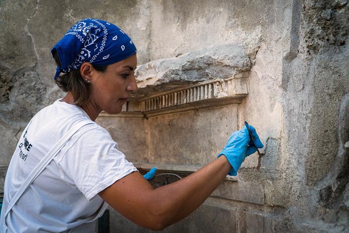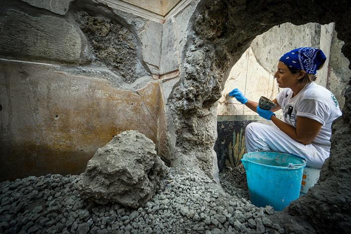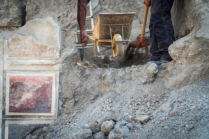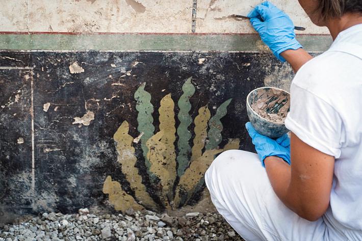 Stucchi colorati che rievocano marmi preziosi, antichi e rarissimi decori che il raffinato padrone di casa aveva voluto mantenere negli ambienti di rappresentanza della sua dimora affacciata sul Vicolo dei Balconi. A Pompei gli scavi nella Regio V restituiscono nuovi tesori e riscrivono la storia di quella che era indicata come la Casa di Giove. «Una domus con decori 'vintagè in I stile - anticipa all’ANSA il direttore Osanna - il cui proprietario doveva essere facoltoso e colto, conscio del valore di pitture già allora centenarie"