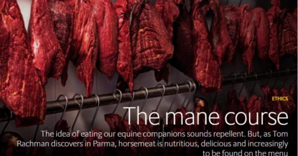 La carne di cavallo ha pochi grassi e tanto ferro, spiega Ferraroni al giornalista, fa bene ai bambini in crescita, agli atleti, agli obesi e agli anziani. E l'atteggiamento verso il consumo degli equini, scrive il reporter londinese, sta lentamente cambiando. «Persino in Gran Bretagna, dove la scoperta nel 2013 che la carne di cavallo era finita in hamburger congelati fece quasi votare tutta la nazione al vegetarianismo, ora si può cenare con gli hamburger di pony, mentre nel Dartmoore (altopiano della contea inglese di Devon, ndr), gli allevatori uccidono ogni anno centinaia di puledri in eccesso per farne salsicce».