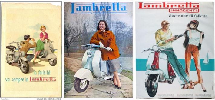 Alla fine degli anni Cinquanta Piaggio e Innocenti intuiscono l’enorme potenzialità del mercato e dopo avere motorizzato impiegati e operai, ai quali non pareva vero di affrancarsi dalla schiavitù dei mezzi pubblici e dalle fatiche sui pedali, cercano di sedurre i giovani, un mercato nuovo e ancora inesplorato. E se l’Innocenti punta sullo sport, la Lambretta è la moto di servizio alle Olimpiadi di Roma del 1960, la Piaggio è la prima a intuire l’importanza del “testimone”, sfruttando la popolarità che le ha dato il cinema.