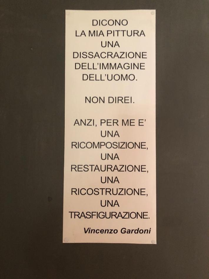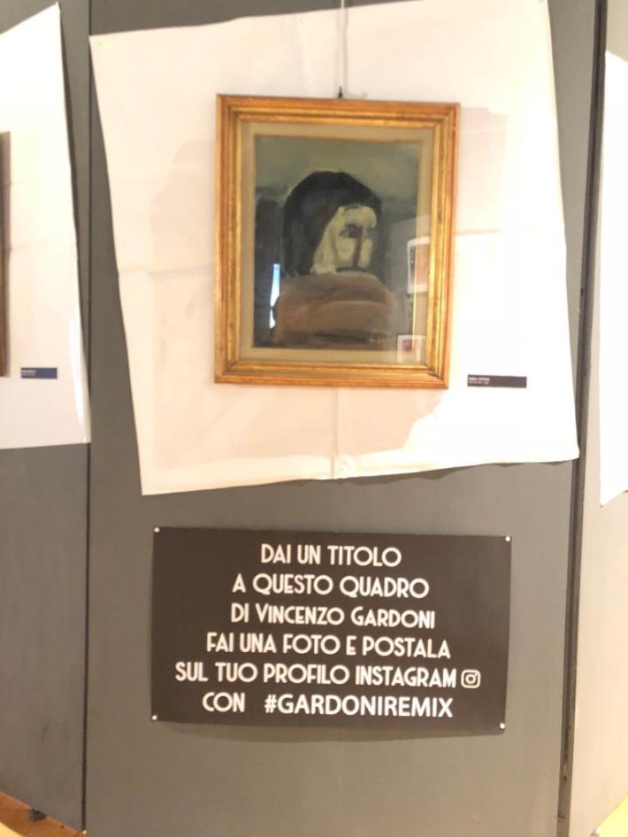 Al centro dell'ex chiesa ("l'occhio" della mostra) si trovano diverse opere di Vincenzo Gardoni. Molte hanno il titolo, ma non tutte. E per una di queste, il pubblico può sbizzarrirsi: basta fare una foto, scegliere il titolo e condividerlo sui social network con l'hashtag #gardoniremix. In alcuni casi, i colori sono visibili su entrambi i lati del foglio dipinto... e così l'artista firmò davanti e dietro.