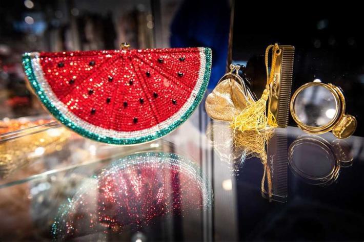 Ad arricchire l’esposizione pezzi iconici di maestri del design come Albini, Iosa Ghini e Fornasetti passando per i gioielli di David Webb o la moda rigorosamente vintage di Valentino, Chanel e Judith Leiber che seppe fare sognare le donne di mezzo mondo con le sue estrose clutch a forma di anguria.
