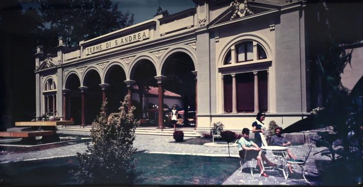 Sant'Andrea Bagni è una frazione del Comune di Medesano e sorge tra boschi di querce e castagni, a pochi passi da Parma. È divenuto famoso per il suo bacino idrotermale forse già all’epoca degli Etruschi, che furono i primi a scoprire le proprietà delle acque curative del Rio Fabbro. La stazione delle acque data la sua origine al 1887, quando Giacomo Ponci e soprattutto il figlio Carlo, proprietari dei terreni lungo le fonti del Rio Fabbro, decisero di promuovere la fase industriale della raccolta delle acque minerali ai fini dell’erogazione delle cure. Su concessione dello Stato, aprirono intorno al 1912 il primo stabilimento per le cure termali e una mescita per la distribuzione dell’acqua alcalina a uso bibita. Il Complesso delle Terme di Sant’Andrea Bagni è l’unica stazione idrotermale dell’Italia centro-settentrionale a raccogliere in uno stesso bacino acque per cure termali e acque minerali per cure idropiniche. La mescita è l’edificio dedicato a quest’ultima tipologia di cure e conta ben otto tipi diversi di acque medicinali da bere: è il solo dei due edifici ancora aperto al pubblico (da maggio a ottobre), anche se necessita di alcuni interventi di manutenzione. Le vecchie terme sono invece chiuse da 20 anni e sono in totale stato di abbandono e degrado. Il comitato “Noi, i ragazzi del Rio Fabbro”, costituito in occasione del censimento FAI in collaborazione con l’Amministrazione Comunale di Medesano e le associazioni presenti sul territorio, ha promosso la raccolta voti per questo “Luogo del Cuore” con l’obiettivo di contribuire a tutelare e conservare questo complesso termale bisognoso di ingenti recuperi.