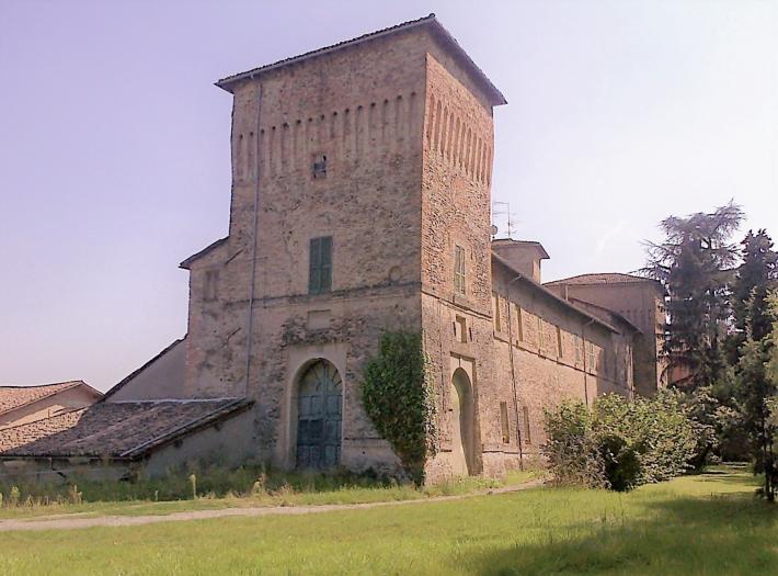 L'edificio che viene comunemente designato con l'appellativo di “castello”, o a livello locale “i torrioni”, venne edificato dai Cantelli, che furono tra i più grandi proprietari terrieri di Panocchia già dall'inizio del secolo XV, come risulta dall'estimo di Niccolò d' Este; è quindi probabile che i Cantelli vi possedessero già nel '400 anche delle case. Edifici con tipologia “a corte” di proprietà dei Cantelli sono segnati da Smeraldo Smeraldi (1553-1634, ingegnere dei Farnese, per tutta la vita realizzerà mappe e disegni del Ducato). descriventi il “Corso della Parma” tra la fine del '500 e inizio '600. In altre mappe risalenti alla fine secolo XVII inizio XVIII si rileva la vastità della proprietà dei Cantelli fino alla sponda occidentale della. L'iscrizione fa espressamente riferimento alla rocca e la definisce “delubrum” (tempio), in quanto vi hanno dormito la regina di Spagna Elisabetta Farnese e la duchessa di Modena Margherita Farnese. Il secolo XVIII rappresentò forse il periodo di maggior splendore dell'edificio che già nel '700 doveva presentare l'aspetto con poche variazioni, che conserva ancora oggi. L'appellativo di “castello” o “rocca” deriva dalle due imponenti torri quadrate che ne caratterizzano l'architettura conferendogli l'aspetto di un fortilizio quattrocentesco, quale è stato scambiato da I. Dall'Aglio, che lo definisce “( …) vecchio castello dei conti Rossi, che servì come sentinella avanzata dei castelli di Torchiara e Felino”. . ………………… Sulla facciata ovest e sul lato nord della prima torre angolare sopra i tre portali d'accesso G. Capecchi individua le scanalature di tre altrettanti ponti levatoi (tre in un solo tratto di trenta metri) che però avevano “una funzionepiù scenografica che difensiva”…… ……………………Al pianterreno del corpo di fabbrica posto a sud si trova un camino seicentesco in arenaria che reca al centro lo stemma dei Cantelli. Il fossato che circondava il castello venne colmato verso la metà del XIX secolo.Alla fine del 1800 e fino al 1920 la rocca sarà utilizzata da alcune ditte conserviere che grazie alle scoperte dei francesi Nicolas Appert e Colin de Nantes prima e Martin de Lignac poi e grazie anche all'introduzione nei primi anni del '900 delle “boules” o “bolle” comunemente chiamate (caldaie in grado di concentrare il succo di pomodoro sotto vuoto), daranno il via alla fase industriale della trasformazione del pomodoro. Foto attuali: ingresso torre e vista zona cortile. Mie foto: ingresso primi del 1900; stemma f.lli Polli (fabbrica di pomodoro); stemma famiglia Cantelli; antica cartolina del 1940 sempre dell'ingresso ovest.