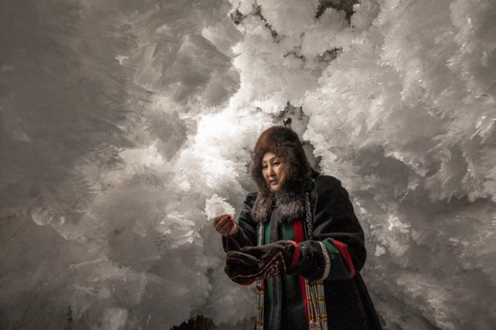 Nel grande corridoio centrale, Natalya Saprunova espone il progetto Permafrost che racconta la vita delle popolazioni dell’estremo nord del continente asiatico. Qui, nei suoi lunghi viaggi in compagnia della macchina fotografica e di un taccuino, la fotografa russo-francese scopre luoghi come la Yakutia e le sue popolazioni indigene, tra cui i pastori di renne Evenki e gli Yakuti, allevatori stanziali di mucche e cavalli. I colori tenui dei suoi scatti restituiscono l’ansia di queste comunità, testimoni del rapporto simbiotico con una natura estrema che oggi è messo a rischio dalle conseguenze dell’industrializzazione.