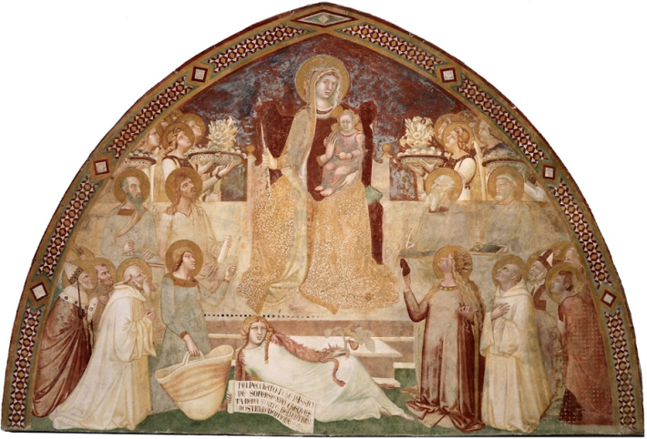Per questo oggi vediamo la Madonna che tiene in una mano destra una bacchetta, mentre con l’altra destra accarezza il Bambino sostenuto con la mano sinistra, realizzato da Nicolò di Segna che coprì la sinistra di Maria che teneva in mano un globo, simbolo del potere terreno. Singolari «anomalie» che non disturbano affatto, anzi ci costringono a guardare gli affreschi di Montesiepi con maggiore attenzione e rispetto.