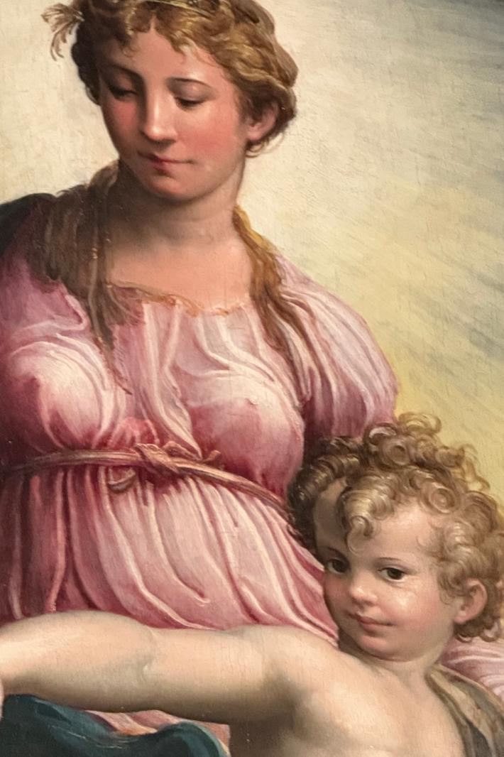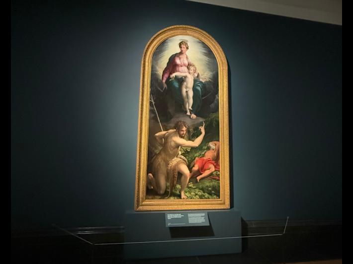 E' una delle mostre più gettonate e apprezzate del momento a Londra. Un successo ampiamente anticipato, verrebbe da dire, visto il valore dell'opera. Un capolavoro parmigiano che festeggia il bicentenario della National Gallery. E' la Visione di San Girolamo o Madonna col Bambino e Santi che torna a farsi vedere al pubblico, dopo dieci anni e dopo un importante restauro. La tavola, una pala, è alla National Gallery fin dal 1826, due anni dopo la fondazione del museo. Venne dipinta dal genio parmigiano a soli 23 anni, nel breve soggiorno a Roma. Sul capolavoro aleggia anche una leggenda. Si dice che il Parmigianino stesse lavorando all'opera proprio mentre i lanzichenecchi stavano saccheggiando Roma. Entrati nella bottega restarono colpiti dalla bellezza del dipinto che gli permisero di continuare salvandogli la vita. In cambio, il genio parmigiano avrebbe dovuto realizzare dei disegni per loro. Salva la vita, il Parmigianino scappò immediatamente da Roma. Non vide mai la pala installata dove avrebbe dovuto "riposare", la cappella dei Bufalini-Caccialupi in San Salvatore in Lauro. Il dipinto venne nascosto nel refettorio di Santa Maria della Pace. Nel 1558 i Bufalini decisero di trasferirla nella loro cappella a Città di Castello e da lì l'acquistò nel 1790 il pittore inglese James Durno che la portò oltremanica. Fu rivenduta al marchese di Albercorn, da lui ai marchesi Dawis e Taylor e poi al reverendo Holwell Carr, che nel 1826 la cedette al museo. Nella mostra londinese per la prima volta la Visione di San Girolamo è affiancata a numerosi studi preparatori realizzate con i gessetti, ma anche vorticosi schizzi a inchiostro.