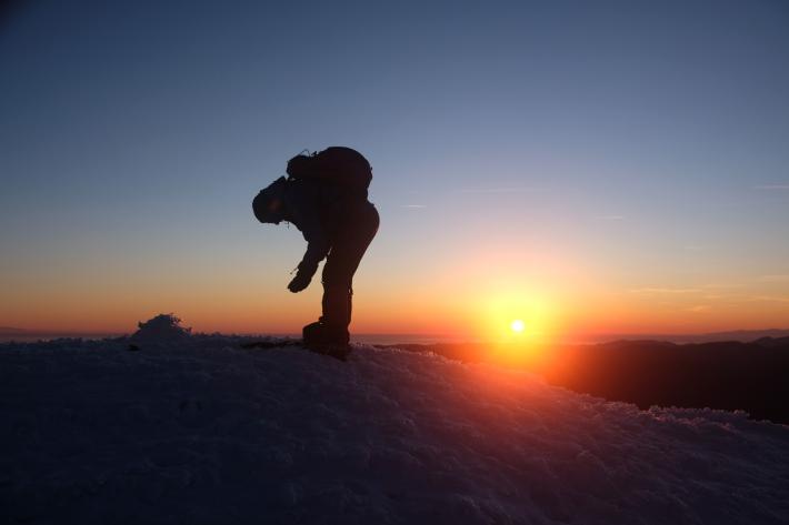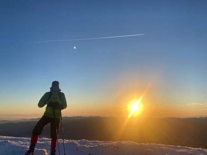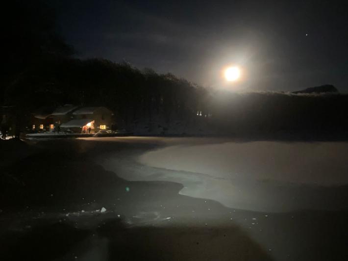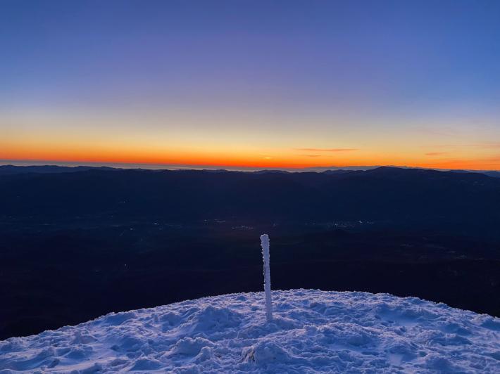 A Langhirano c’è già il sole e in un’ora siamo al rifugio Lagdei. Ci contiamo, il più esperto si mette in testa e il più saggio va in coda per non dimenticare nessuno. Via dai, alla sella del Marmagna spazzata dal vento. Dai andiamo in vetta per l’appuntamento con il tramonto del sole che chiude gli affanni della giornata qui sulla Terra. In lontananza Lerici e Portovenere. Il vento gelido pulisce i cuori e favorisce gli abbracci. Ringraziamo il cielo perché anche quest’anno siamo in buona salute. Ed è subito sera. Mettiamo le pile frontali e scendiamo con gli occhi sorridenti giù al Lago Santo, ghiacciato e incantato. Al rifugio Mariotti ci aspettano per la cena: zuppa di cipolle, costine in umido, un bicchiere di vino e un pezzettino di panettone al cioccolato. Il cuoco del rifugio e tutti i ragazzi che ci servono la cena, gentilissimi, ci invitano a fare presto perché devono pulire tutto, chiudere il rifugio e tornare a casa sulla seggiovia esposta al vento. È ora di tornare. Ci rivestiamo perché adesso fa davvero freddo: scarponi, guanti e ramponi. Accendiamo la luce delle pile frontali e scendiamo per il sentiero che si ricorda di Maria Luigia ormai due secoli fa. Tutti insieme siamo una luminaria vivente, facciamo il solletico alla neve con i nostri passi. In cielo la luna piena ci osserva e ride. In un attimo, per magia, siamo nelle nostre case di Parma: siamo andati e tornati da un altro mondo. A Parma lo sanno in pochi.