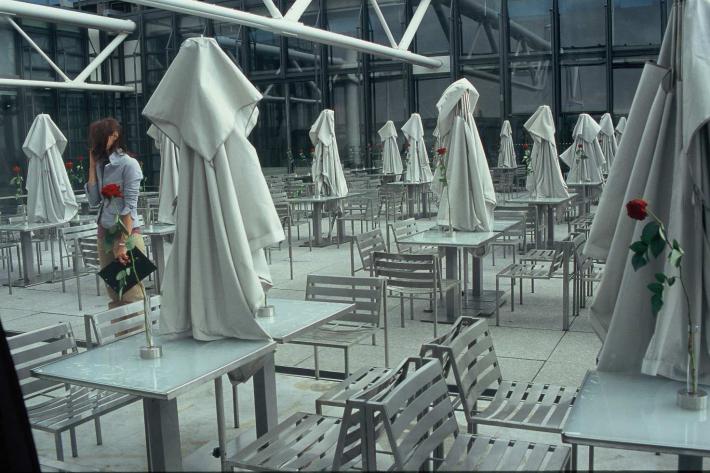 Continua il viaggio alla scoperta dell'opera fotografica di Giovanni Greci, con le immagini tratte dal volume «Oltre a ciò, vedi». Dopo i silenzi nei luoghi chiusi, dopo le atmosfere sospese negli spazi bellissimi e stranianti, eccoci giunti finalmente all’esterno. Eccoci fuori le mura degli edifici. Eccoci a osservare nuove solitudini, ansie, angosce e spaesamenti nuovi. Ma ecco, alla fine, fare capolino la speranza, con la presenza di donne sedute a bersi un caffè o in transito verso private mete, o in dolce compagnia. Luci e linee scelte come sempre con cura alla ricerca dell'armonia estetica, soggetti individuati con pazienza in attesa dell'attimo giusto. Lo scopo scattare la fotografia perfetta.