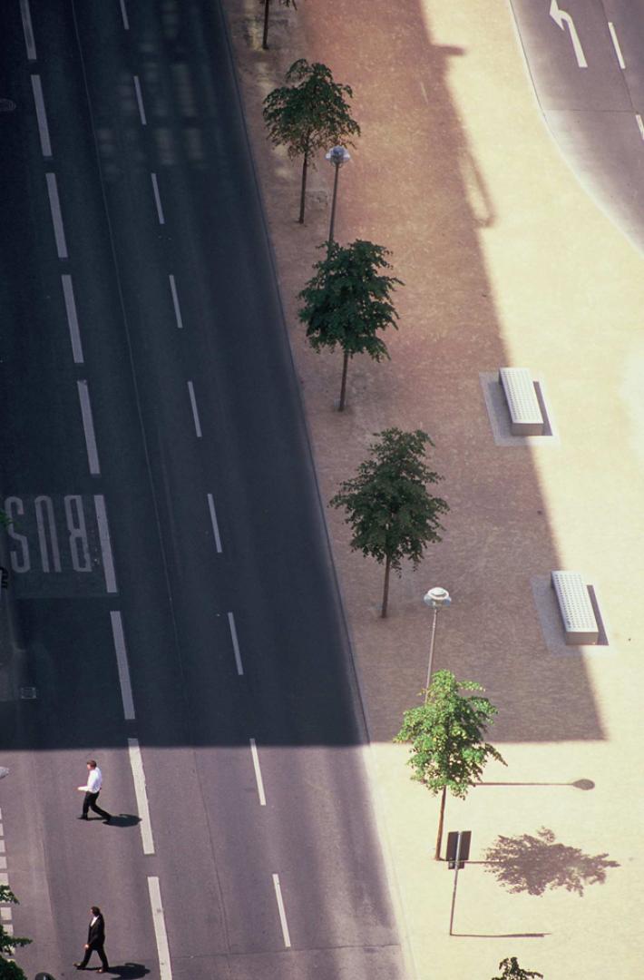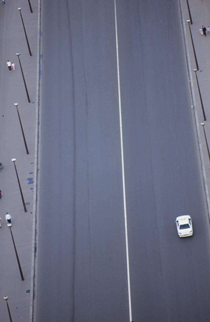 Scorrendo le pagine, ci troviamo improvvisamente proiettati verso l’alto, come fossimo uccelli, a scrutare laggiù i passanti (noi stessi) da un nuovo punto di vista, forse un tentativo di prendere le distanze dalle cose del mondo dentro cui siamo invisibili esseri di passaggio. Prima del congedo l'obiettivo si innalza e allontana dagli esseri viventi, lo spazio prende il sopravvento.