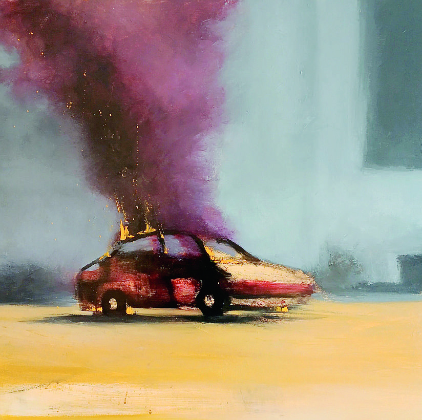 I quadri in esposizione non si limitano a rappresentare l'automobile incidentata come soggetto estetico (da qui il sottotitolo), ma attraverso un linguaggio crudo e poetico vogliono esplorare la complessità del rapporto uomo-macchina in un'epoca di crisi, dove l'automobile, simbolo del boom economico e della modernità, si trova a confrontarsi con nuove sfide ambientali, economiche e sociali. Le opere, pur nella cura della forma, catturano l'energia del momento dell'impatto, la violenza della collisione, ma anche la fragilità della carrozzeria, metafora della condizione umana, e non si focalizzano sulla rappresentazione realistica dell'incidente, ma scavano nella materia pittorica, creando un dialogo tra figurazione e astrazione, tra ordine e caos.
