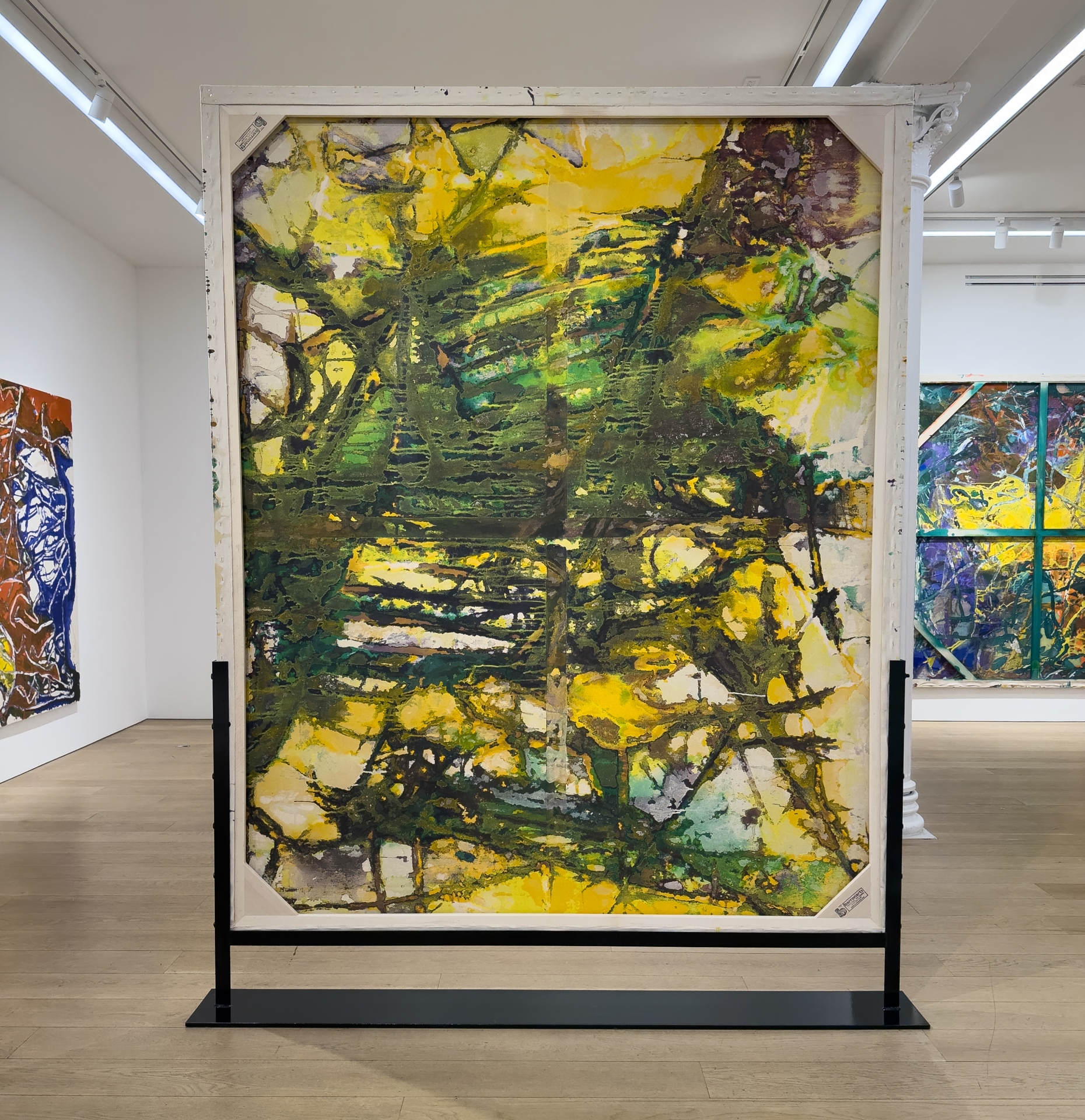 In questi anni, pur mantenendo uno spirito “ribelle”, sono cresciuti molto come galleria, incrementando il numero di artisti che rappresentano e il numero di fiere a cui partecipano. Forse meno sperimentale che alle origini, ma sempre una galleria da tenere sott’occhio, perché gli artisti sono i più bravi a scoprire nuovi talenti. CANADA rimane comunque una specie a rischio di estinzione, come molte delle gallerie di medio formato che stanno tremando da mesi e io tifo per loro. La mostra era la personale di Dona Nelson, intitolata The Individualism of Dona Nelson, presentata in collaborazione con la galleria Thomas Erben. Con un titolo che riprende un album di musica jazz, l’artista sembra celebrare le sue jam session in studio, con quadri dai gesti ampi e ripetuti. Nelle sale sono posizionati una serie di quadri sospesi su strutture metalliche da lei stessa disegnate, che permettono di girare intorno al quadro e mostrare una pittura “a tutto tondo”. I quadri sono dipinti anche sul retro e sui telai, come fossero passati sotto a un autolavaggio. Con una tecnica mista che comprende dripping, disegno, sottrazione e addizione, colate di colore e altre stregonerie da studio, l’artista crea dei paesaggi astratti che a volte sembrano reperti geologici per le innumerevoli stratificazioni. Il risultato finale è piacevole e carnoso, anche se in foto mi erano sembrati meno decorativi. Una mostra di qualità, con diverse idee, dove si vede che l’artista si è divertita e che consiglio di andare a vedere soprattutto per chi, come me, ha un debole per i quadri astratti di grande formato.