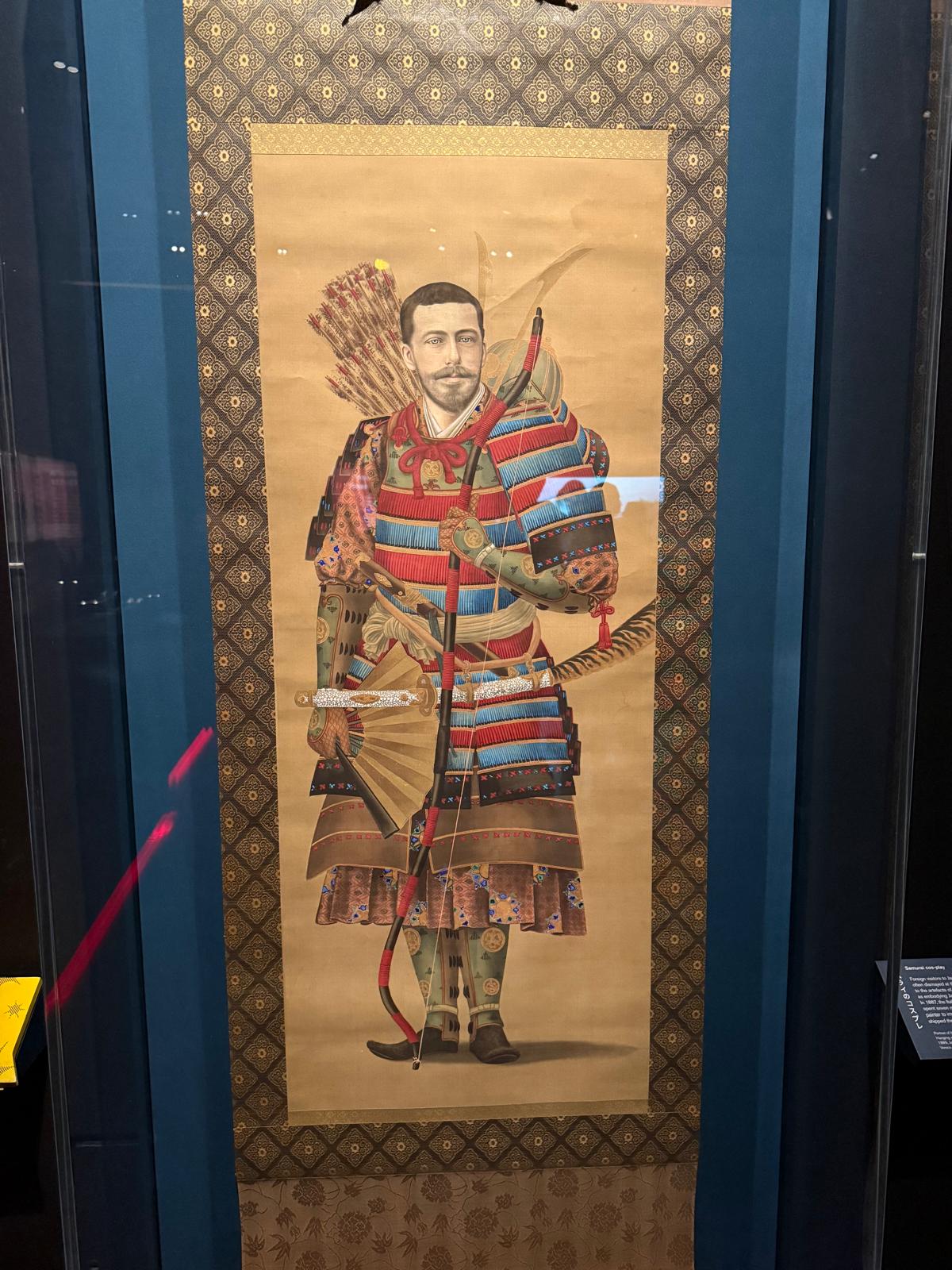 Suggestiva e affollata mostra sui samurai al British Museum di Londra. Tra le armature, le katane e i mille oggetti che impreziosiscono l'esibizione, spunta un dipinto "giapponese" su seta di Enrico di Borbone Parma, il conte di Bardi, ma principe ducale di Parma e Piacenza.