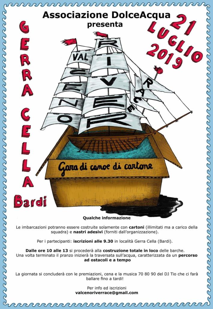 Nella splendida cornice della Valle del Ceno si svolgerà la divertentissima ValCeno River Race, la gara di canoe di cartone dedicata a grandi e piccini. Dopo il successo degli anni precedenti anche quest’anno il Torrente Ceno ospiterà l’originale traversata, che vedrà solcare le sue dolci acque da canoe del tutto inaspettate: tutti i partecipanti infatti potranno dare libero sfogo alla propria fantasia costruendo imbarcazioni col solo utilizzo di cartoni (illimitati ma a carico della squadra) e nastri adesivi (forniti dall’organizzazione).