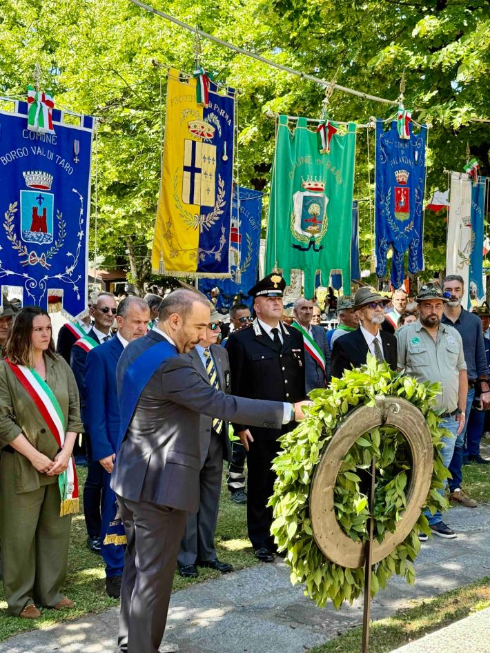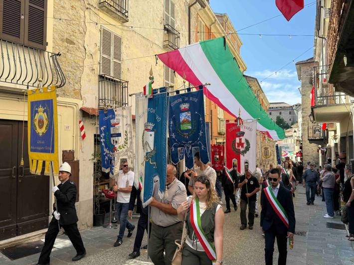 Questa mattina si è tenuta l’attesa sfilata, partendo dal Castello - alla presenza del gonfalone della Provincia di Parma e dei comuni del Parmense - con deposizione di un mazzo di fiori alla lapide del Capitano Pietro Cella di Bardi, prima medaglia d’oro agli Alpini, e la deposizione di una corona d’alloro al monumento ai caduti di Bardi.