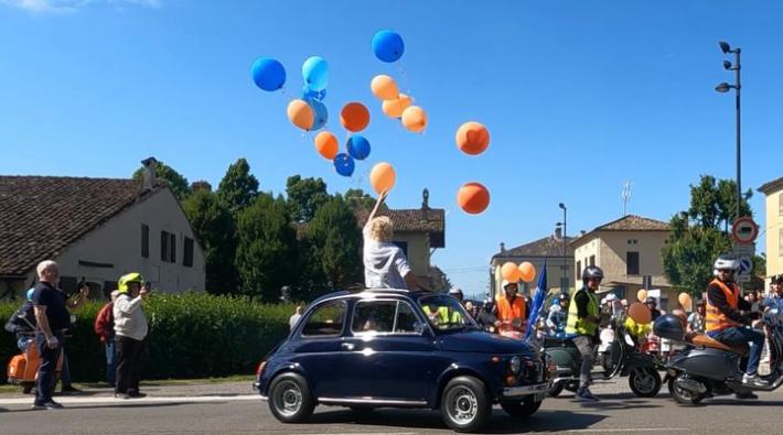 Il Vespa Giro partito da Roncole Verdi ha poi toccato Fidenza con tappa al Caseificio Parma 2064 per uno spuntino, poi è giunto ai Laghi Le Ruote per l’aperitivo ed infine il ritorno a Roncole Verdi. L’Ape Disco di Stefano Dioni ha accompagnato i partecipanti dispensando musica ed allegria. Il pranzo si è tenuto all’aperto nell’area adiacente il nuovo Spazio Giovani di prossima apertura e, a seguire, musica con la band Extramondo di Busseto. Grande l’emozione sollevata da Alice Passera che ha cantato al cospetto di Sonia Mezzadri, mamma di Nicolas, proponendo un brano molto toccante. Quindi l’estrazione di due corsi di guida sicura da tenersi al circuiti Aci – Sara di Lainate ha concluso la giornata. Sonia Mezzadri ha ringraziato tutti i partecipanti, gli sponsor, gli amici che hanno lavorato alla preparazione di quello che è stato prima di tutto un momento di grande amicizia ed ora sono anche già arrivate le prime adesioni al Vespa Giro del 2026