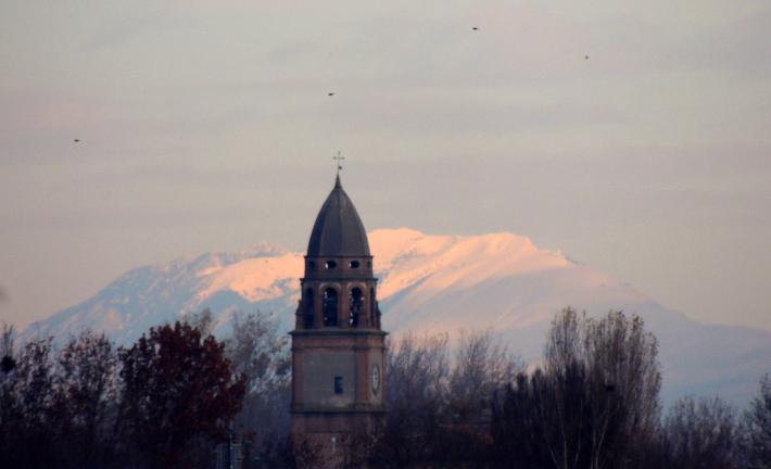 Una cornice naturale spettacolare quella che oggi <dipinge> l’orizzonte nelle terre del Po. Uno spettacolo mozzafiato che è quello delle Alpi innevate che si notano in modo molto distinto, lungo appunto la linea dell’orizzonte. Le nevicate, anche abbondanti, dei giorni scorsi, si possono osservare in modo molto chiaro dai paesi della nostra Bassa, e anche da Parma. Come se per un giorno, il fiume e le Alpi, a loro modo, si incontrassero.