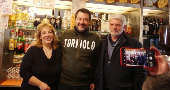 TORNOLO QUELLA FELPA PREPARATA DAI SOSTENITORI - Folla eccezionale ieri a Tornolo, dove via Roma e il bar Centrale sono stati presi d’assalto in occasione della visita del leader della Lega. Salvini di buon'ora è salito nell’ultimo lembo di terra emiliana invitato dal sindaco Renzo Lusardi e dall’amministrazione. Subito ha indossato la felpa con la scritta Tornolo che alcuni giovani sostenitori gli avevano fatto preparare poi ha tenuto un breve comizio nel quale ha esaltato i valori della montagna e chi vi abita garantendo il suo sostegno e la condivisione dei problemi da risolvere. A seguire la colazione: un caffè e un trancio di focaccia salata tipica di Tornolo.