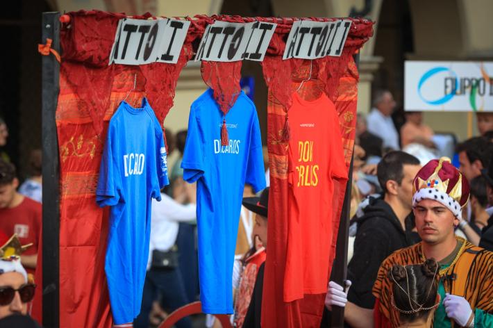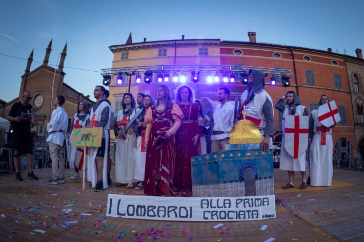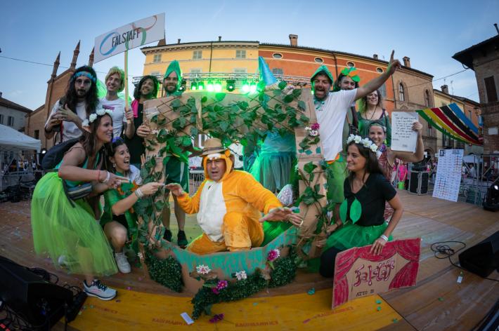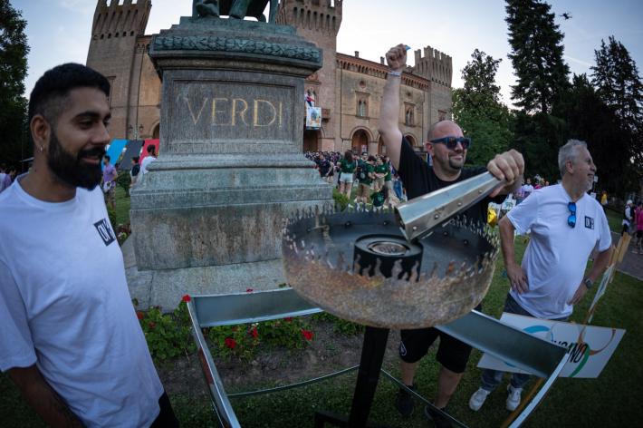 Pallavicino al palco di piazza Verdi per la presentazione ufficiale in piazza, affidata alla "Iena" Niccolò Torielli, che ha accompagnato fino al momento dell'accensione della fiaccola olimpica. Ma già la parata ha fatto entrare il gioco nel vivo: ogni squadra, chiamata ad interpretare un'opera verdiana, è stata valutata dalla giuria composta da Stefano Nevicati (Sindaco di Busseto); Chiara De Carli (Gazzetta di Parma); Pietro Corvi (Libertà); Elena Bonilauri (Associazione Amici di Verdi);