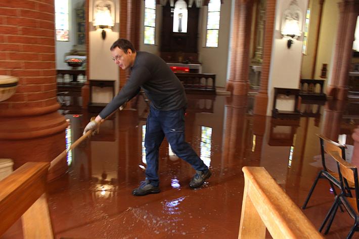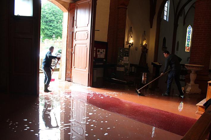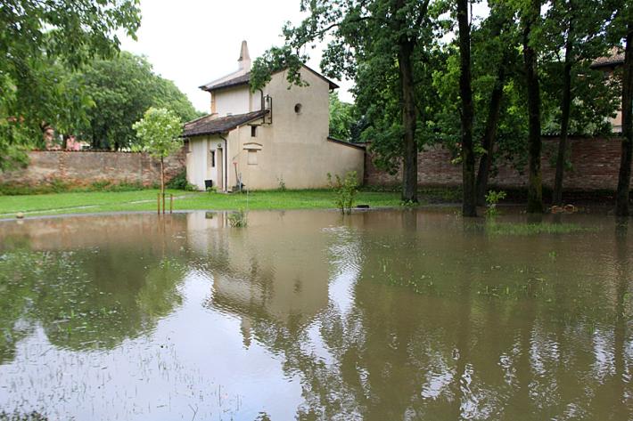 Oltre alla chiesa l’acqua ha raggiunto e invaso anche larga parte del grande e suggestivo parco circostante arrivando a lambire anche la chiesetta della Madonna Rossa. Segnalati anche allagamenti in diverse strade sia del capoluogo che delle frazioni.