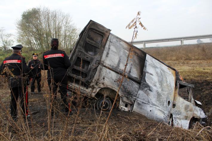 Notte movimentata nella Bassa tra Roccabianca, Polesine e Zibello. Tre furgoni rubati a Reggio Emilia sono stati intercettati dai carabinieri della compagnia di Fidenza. Due di questi, nel corso dell’inseguimento, sono usciti di strada, nei pressi del ponte sul Po "Giuseppe Verdi" ed uno di questi è stato divorato da un incendio. Il terzo è stato fermato e recuperato nei pressi di Zibello. I ladri purtroppo, favoriti dall’oscurità, si sono dileguati ma sono tuttora in corso ricerche a tappeto. Intercettati dai carabinieri di Roccabianca, due furgoni hanno cercato un'improbabile fuga verso il ponte Verdi, uno di questi tuttavia nello svoltare in una strada di campagna è uscito di strada. L’altro, poche centinaia di metri più avanti è finito in un canalone ed ha preso fuoco. Il terzo, come detto, è stato invece fermato dai carabinieri di Busseto nell’immediata periferia di Zibello. Chi era alla guida dei tre veicoli si è dato alla fuga nei campi facendo perdere le proprie tracce, probabilmente tra le golene e le campagne del Po. Alle ricerche, a tappeto, oltre ai carabinieri di Roccabianca e Busseto hanno partecipato anche quelli di San Secondo, Colorno e Polesine Zibello ed al momento le indagini sono in corso al fine di individuare il gruppo di fuggiaschi. Questi hanno anche cercato di rubare un’auto a Ragazzola, senza riuscirvi. E’ anche lecito supporre che chi era alla guida del Daily finito in un canalone nella golena del Po si sia, molto probabilmente, ferito in modo abbastanza serio. Sul posto, questa notte, anche i vigili del fuoco del comando provinciale di Parma che hanno domato il rogo del furgone finiti nel canale in golena.