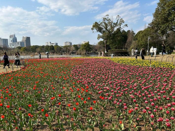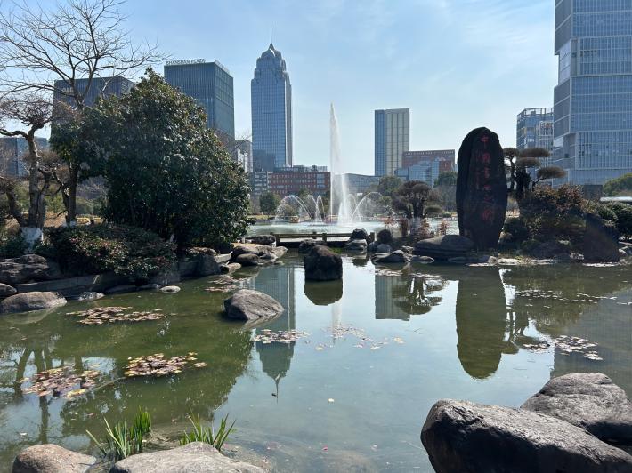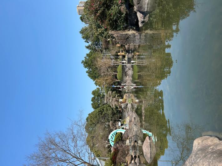La giornata di ieri, essendo domenica, l'ho dedicata a una normale attività di relax. Dopo pranzo, con un amico abbiamo girato per la città senza meta, da flaneur, lasciandoci semplicemente condurre dalle strade. Accanto al Municipio c'è un parco. Non è famoso, non ha alcun valore storico o riconoscimento nazionale, non ha nemmeno un nome proprio: porta semplicemente quello del distretto in cui si trova, Yinzhou (鄞州). È solo uno dei tanti luoghi, sobri, semplici e al contempo eleganti, che si rivelano negli angoli di Ningbo. La passeggiata in un vasto spazio di sentieri curati e alberi potati con precisione, quasi simbolo vivente della primavera incipiente, è davvero il bello della normalità.