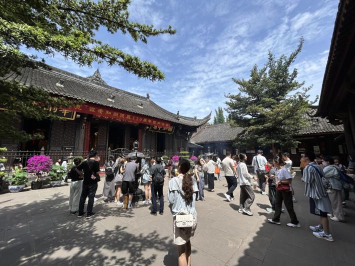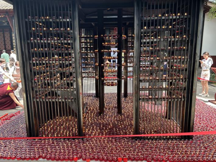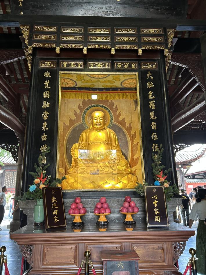 La tappa successiva del nostro viaggio a Chengdu è il Monastero di Wenshu (文殊院), costruito tra il 605 e il 617, che ospita simboli di grande importanza per il Buddhismo, in particolare per la corrente Chan. Tra tutti i templi che ho visitato, questo è stato senza dubbio uno dei più affollati. Avete presente quando si dice “non si riuscirebbe a far cadere uno spillo”? Ecco, proprio così. Una volta varcato il cancello e immersi nell’atmosfera del luogo, si capisce subito perché il Monastero di Wenshu riceva tanta attenzione, sia da parte dei fedeli sia da parte dei semplici visitatori. Come molti altri templi, anche questo ha affrontato distruzioni ripetute nel tempo, ma dal suo restauro del 1702 è stato preservato in modo straordinario. La manutenzione e la gestione dei flussi di visitatori sono pianificate con grande cura. Al suo interno si trovano reliquie appartenute a figure molto rispettate nella comunità buddhista, e un tempo nel giardino c’erano anche due pini cinesi di oltre duemila anni. Ma l’aspetto più iconico di Wenshu è, senza dubbio, la Pagoda dei Mille Buddha, che vi accoglie all’ingresso. Sinceramente vi consiglio di venire e, se ne sentite il bisogno, di accendere tre bastoncini d’incenso di sandalo. Con il cuore.
