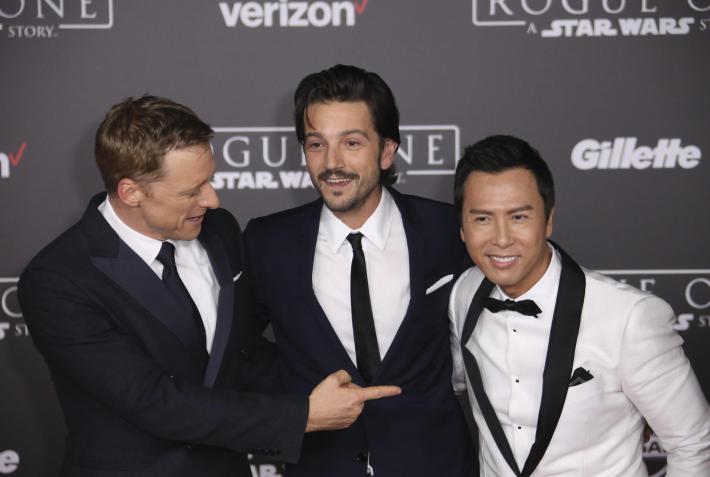 Pantages Theatre di Los Angeles, premiere mondiale di Rogue One spin off ambientato nell'universo della saga di Guerre Stellari. Tradizionale parata di star. La pellicola arriva in sala il 15 dicembre.