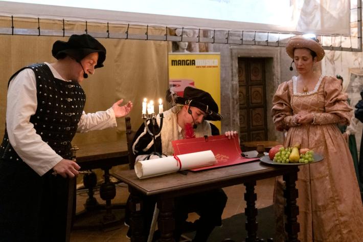 Prima di lei, “Ouvertoure rossiana” curata dalla Compagnia Corte dei Rossi, guidata da Diego Borettini. (Foto di Fabrizio Bertolini)