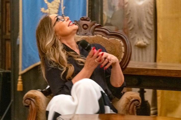 Bagno di folla per la diva Ornella Muti a Mangiacinema, nella Sala delle Gesta della Rocca dei Rossi di San Secondo Parmense. Ospite del Festival diretto da Gianluigi Negri, la Muti ha ricevuto il Premio Mangiacinema – Creatrice di Sogni (realizzato dall’artista Lucio Nocentini).