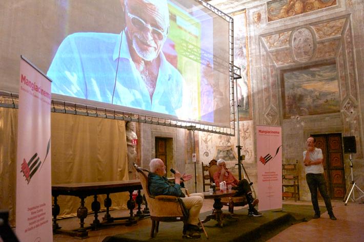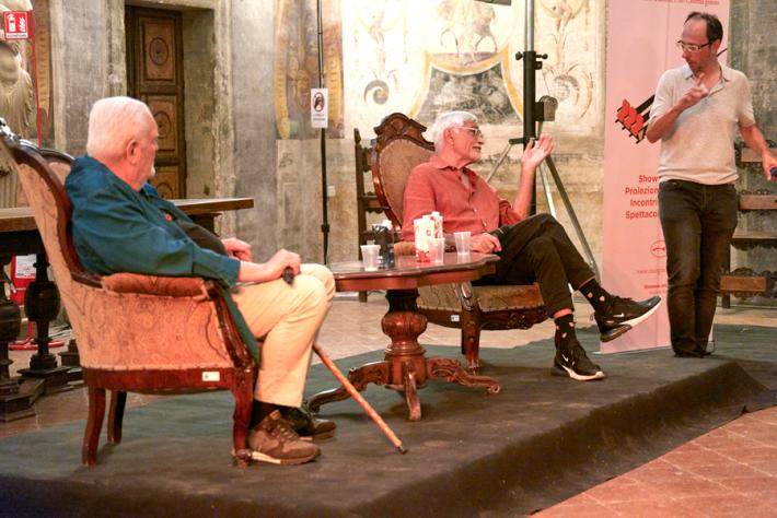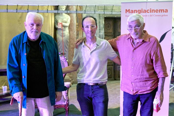 La serata d'onore con Francesco Barilli e Luc Merenda, che hanno presentato a Mangiacinema, nella Rocca dei Rossi di San Secondo, la versione restaurata del loro cult “Pensione paura” e raccontato mille aneddoti sulle loro carriere e sui progetti in cantiere. Il Premio Mangiacinema Pop a Valerio Massimo Visintin, il critico mascherato, autore di “Dietro le stelle” per Mondadori. E le Mangiastorie di Marcello Pattini (Dolci Pattini), Food Farm 4.0 e David Cesari (Birrificio Legnone). Direzione artistica: Gianluigi Negri. Foto di Fabrizio Bertolini.