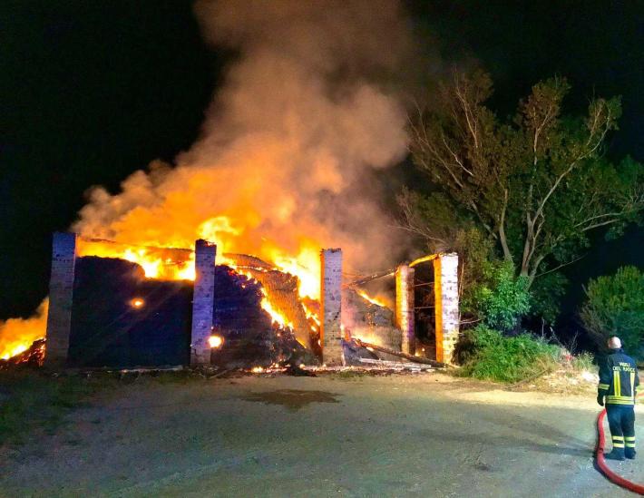 I vigili del fuoco sono in azione da questa mattina all'alba a Madregolo  di Collecchio  in via Varra Inferiore per spegnere un incendio che ha coinvolto  150 balle di fieno.