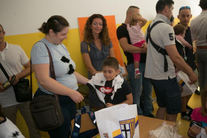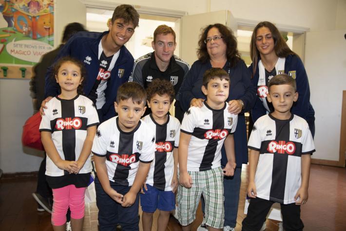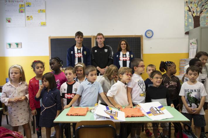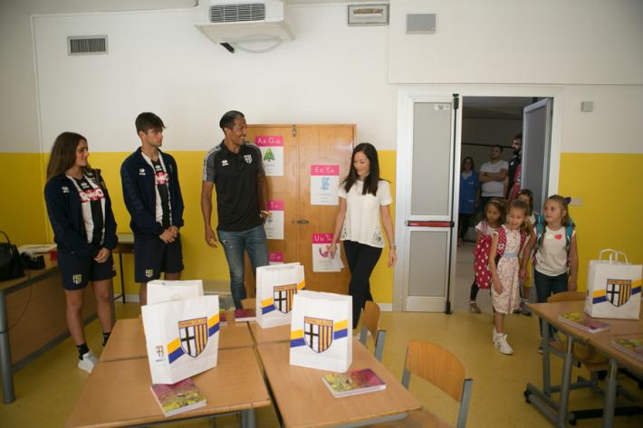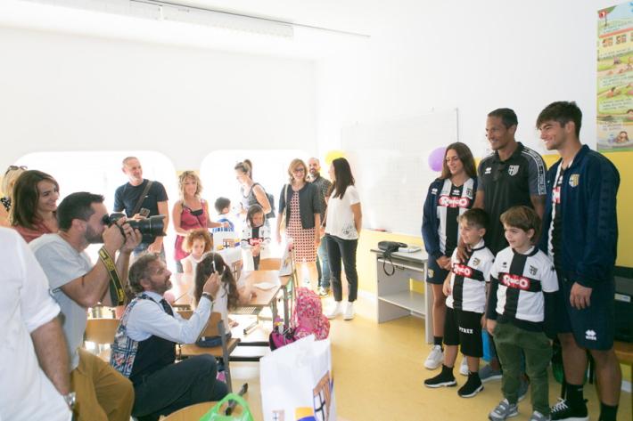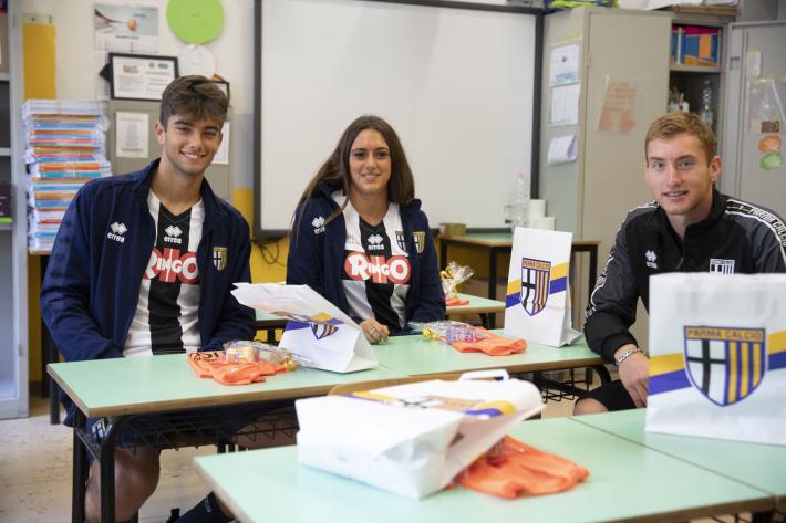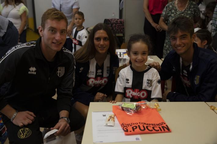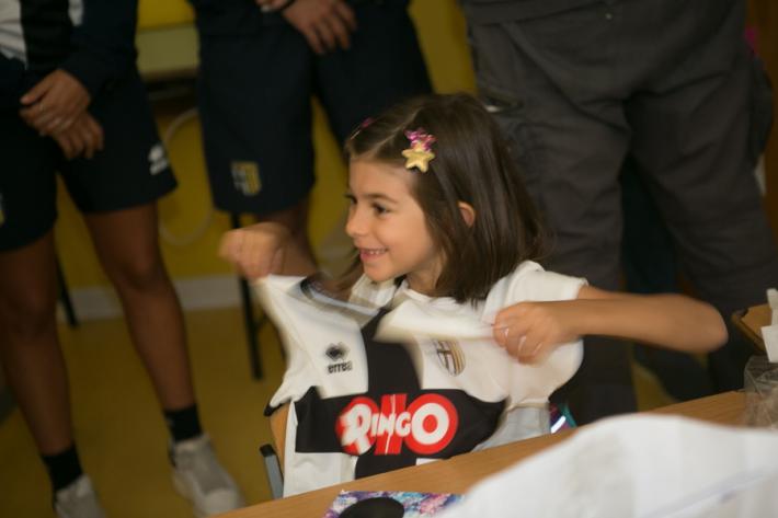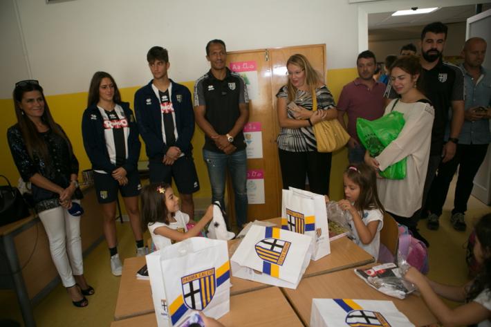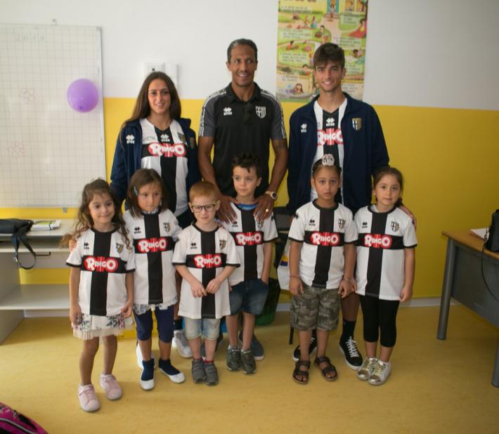 La bella sorpresa per i remigini della Pezzani e della Verdi di Collecchio fatta dai giocatori del Parma calcio.