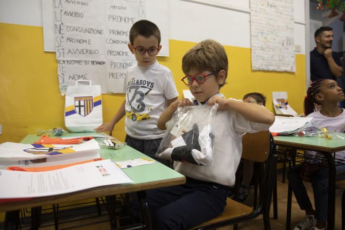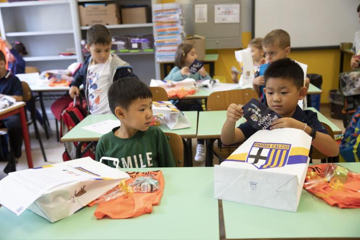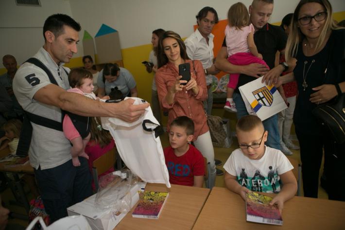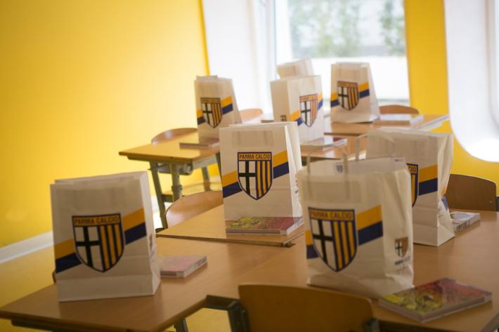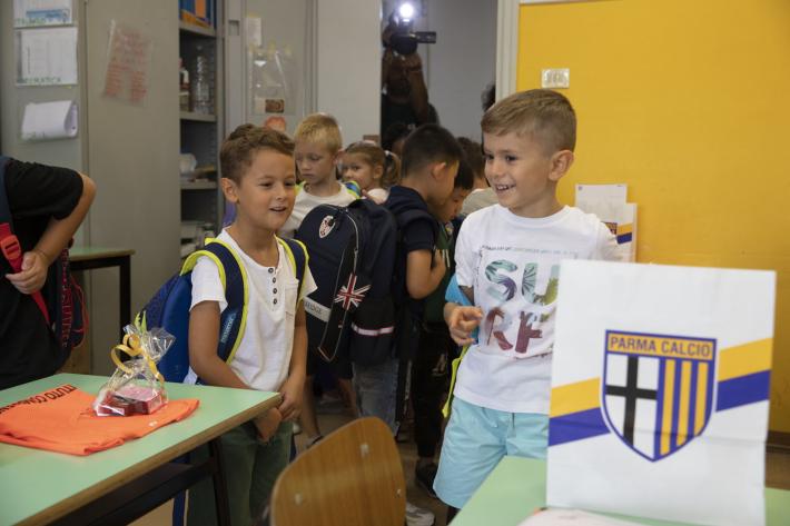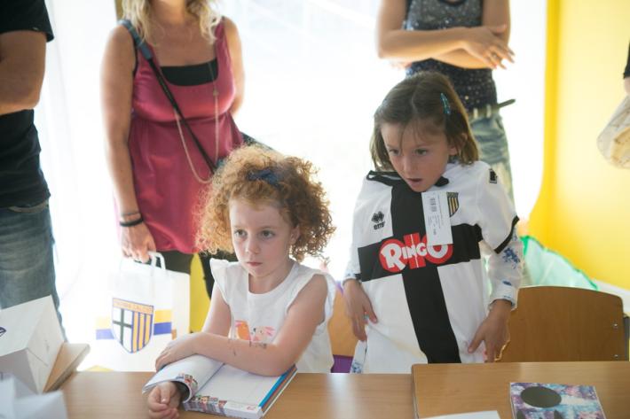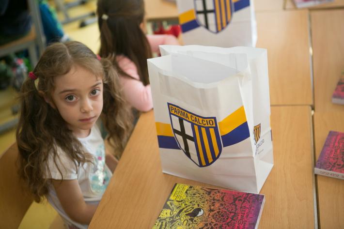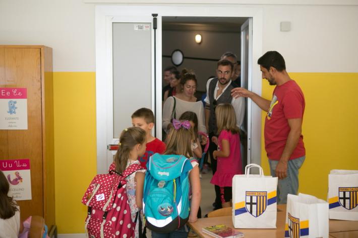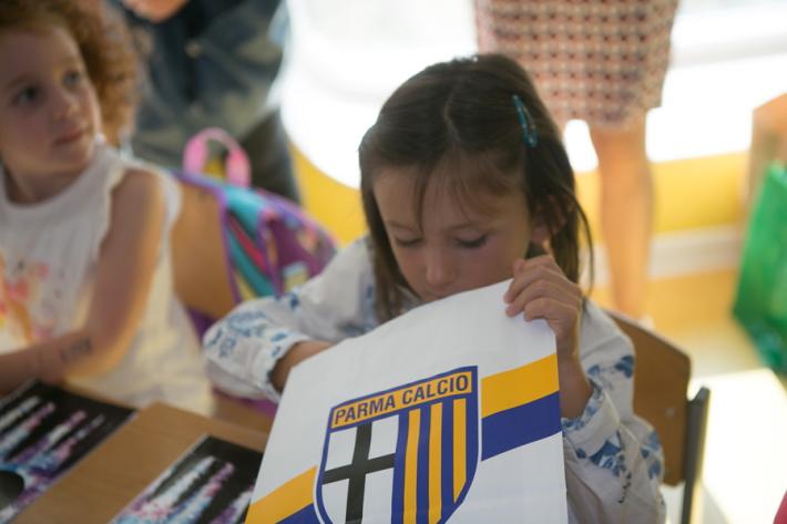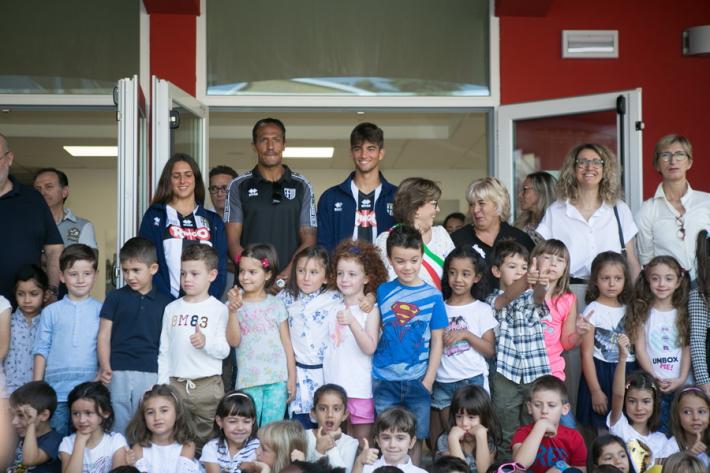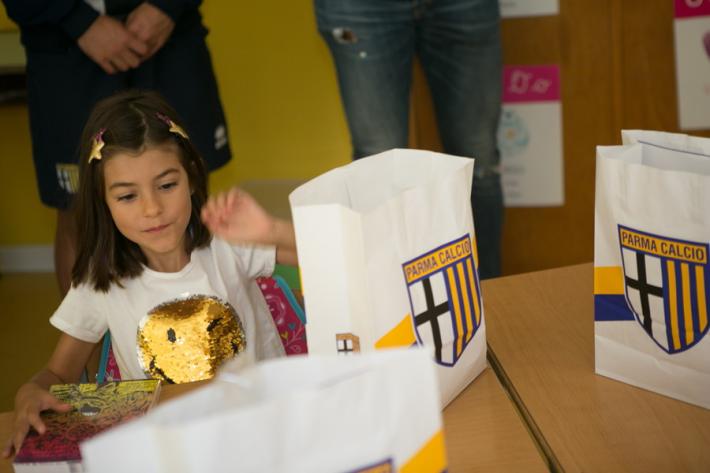 La bella sorpresa per i remigini della Pezzani e della Verdi di Collecchio fatta dai giocatori del Parma calcio.