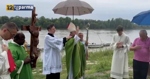 Tradizionale benedizione delle acque del Po da parte del vescovo Solmi che ha rivolto un pensiero alle persone "che pagano il cambiamento climatico".
