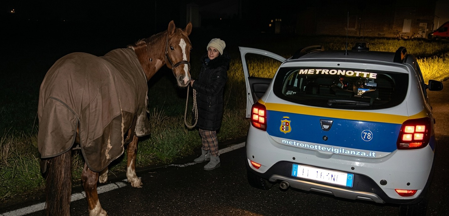 Cavallo scappato e recuperato, ieri sera a Santa Croce di Polesine Zibello, grazie all’intervento di una pattuglia della Metronotte Vigilanza. Poco dopo le 23,30, mentre imperversava il maltempo, una pattuglia della Metronotte Vigilanza, ha notato una donna correre lungo il ciglio della strada, fermandosi quindi immediatamente per verificare la situazione.