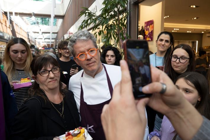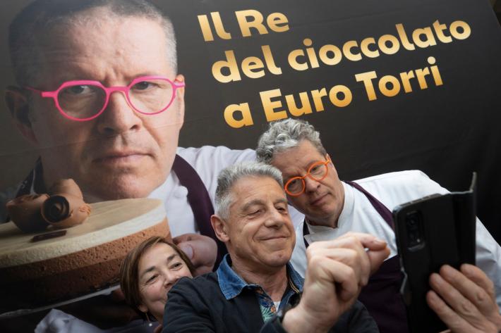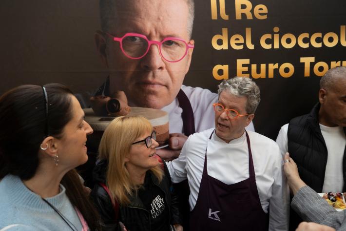 Folla al'Euro Torri per gli amanti del cioccolato che hanno accolto Ernst Knam, il celebre «Re del cioccolato». Nato in Germania nel 1963, il celebre pasticcere e maître chocolatier milanese d'adozione, discepolo di Gualtiero Marchesi, ha aperto la sua pasticceria a Milano nel 1992, distinguendosi per la lavorazione del cioccolato, creazioni artistiche e l'uso innovativo di spezie e frutta. Nella fotogallery di Annarita Melegari guarda chi c'era