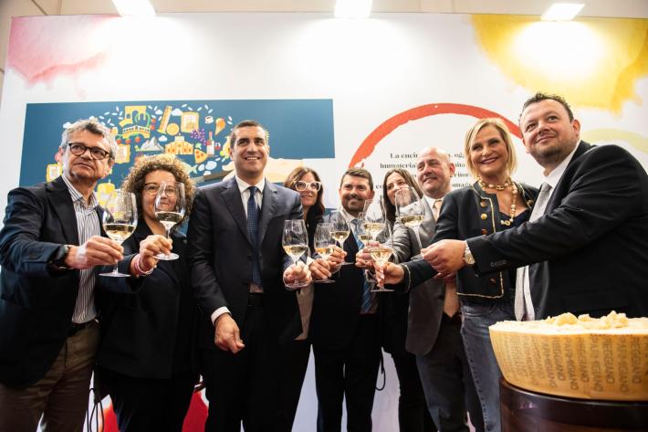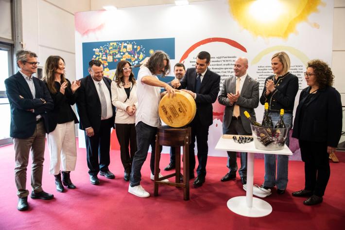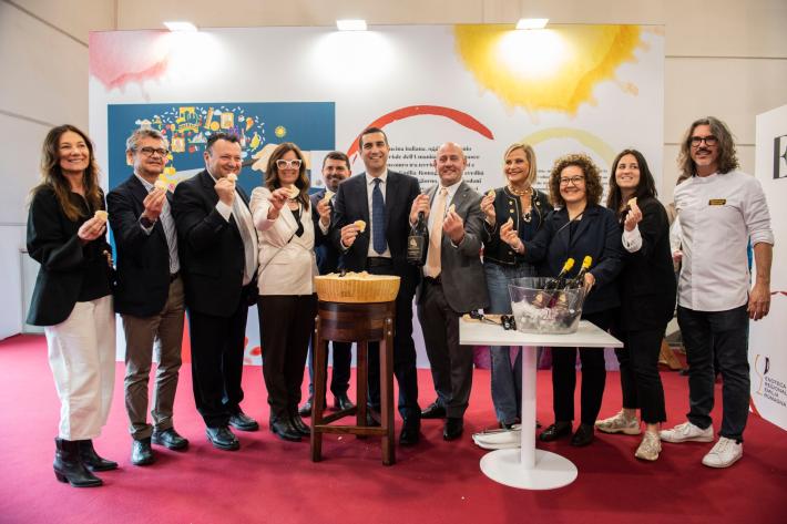 Con l’apertura di una forma di Parmigiano Reggiano Dop speciale serigrafata, è stato inaugurato oggi a Vinitaly, il Salone internazionale dei vini e dei distillati a Veronafiere, il padiglione numero 1, ‘storica’ casa dell’Emilia-Romagna. Uno spazio che, anche per l’edizione 2026, è ricco di novità, non solo grazie a una nuova veste grafica, ma con un nuovo racconto: quest’anno, la regione si presenta alla principale vetrina internazionale del settore vitivinicolo affiancando, per la prima volta al racconto del vino, l’offerta turistica regionale, mettendo in relazione produzioni, territori e destinazioni.