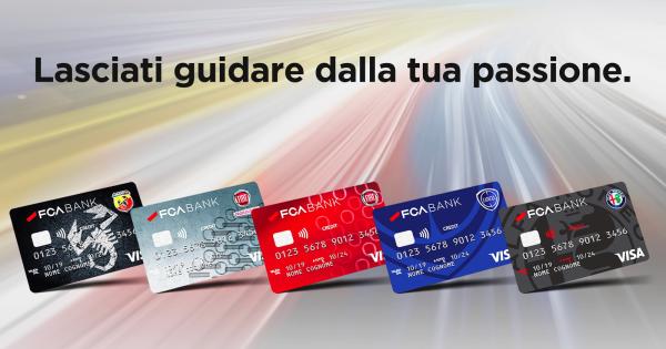 I servizi - anche finanziari - a supporto del mondo dell'automotive continuano a evolvere. L'ultimo esempio è di FCA Bank che ha dato vita a cinque carte di credito diverse, ognuna con uno dei loghi dei marchi del gruppo, il cui utilizzo permette di guadagnare punti utili per ottenere sconti per l’acquisto di un’auto nuova. Convenzionata con il circuito Visa, permette di guadagnare punti validi anche per comprare merchandising dei brand Fiat, Alfa Romeo, Lancia, Abarth, Fiat Professional.